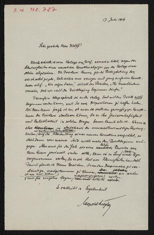 Liegler, Leopold: Brief an Kurt Wolff. o.O., 17.7.1916