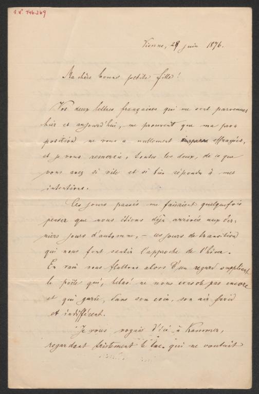 Lotheißen, Ferdinand: Brief an Sophie Lotheissen. Wien, 28.6.1876