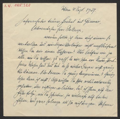 Mandyczewski, Eusebius: Brief an Wilhelm Kienzl. Wien, 4.9.1927
