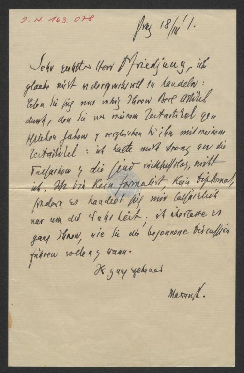 Masaryk, Tomáš Garrigue: Brief an Heinrich Friedjung. Prag, 18.3.1901