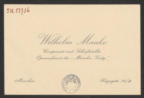 Mauke, Wilhelm: Billett an Ferdinand Löwe. o.O., 20.5.1910