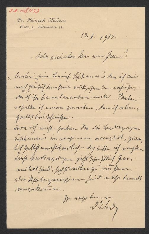 Modern, Heinrich: Brief an Dominik Artaria. Wien, 13.1.1902