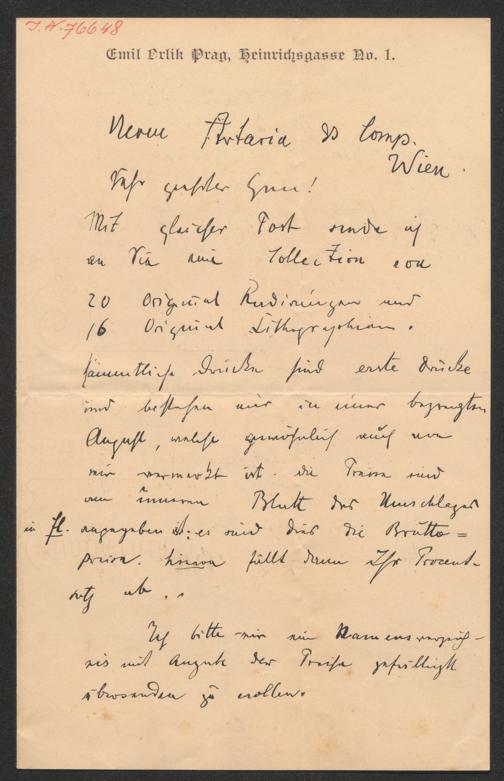 Orlik, Emil: Brief an Artaria und Compagnie. Prag, 26.5.1899