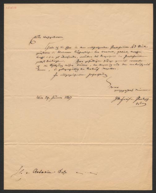 Prokesch von Osten, Anton: Brief an Artaria und Compagnie. Wien, 29.1.1847