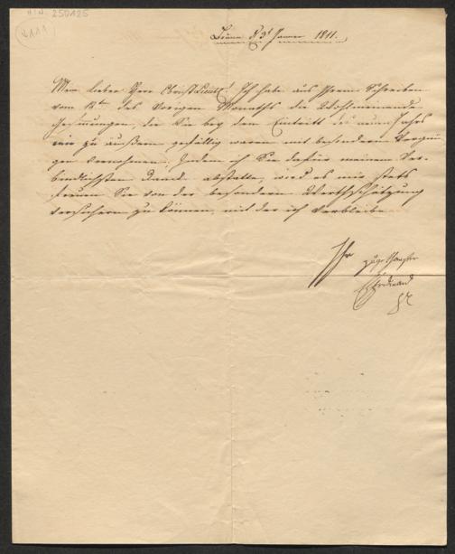 Ferdinand Karl: Brief von Erzherzog Ferdinand Karl an Unbekannt. Brünn, 3.1.1811