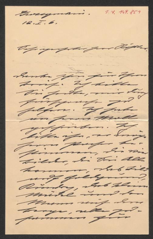 Reichel, Karl Anton: Brief an Arthur Roessler. Großgmain, 12.1.1906
