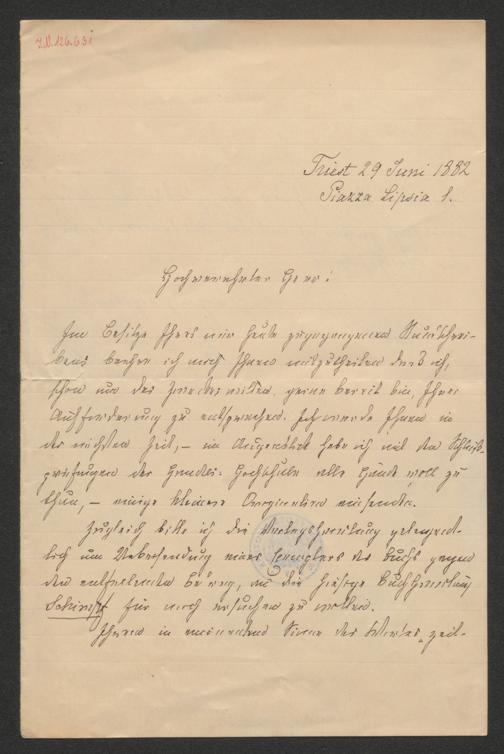 Sauer, Carl Marquard: Brief an Karl Emil Franzos. Triest, 29.6.1882