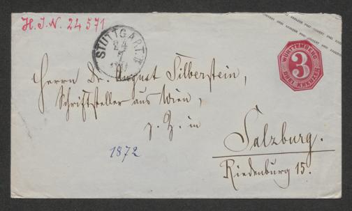 Scherer, Georg: Brief an August Silberstein. Stuttgart, 24.7.1872