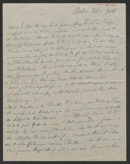 Schnitzler, Arthur: Brief an Clara Katharina Pollaczek. Berlin, 27.12.1926