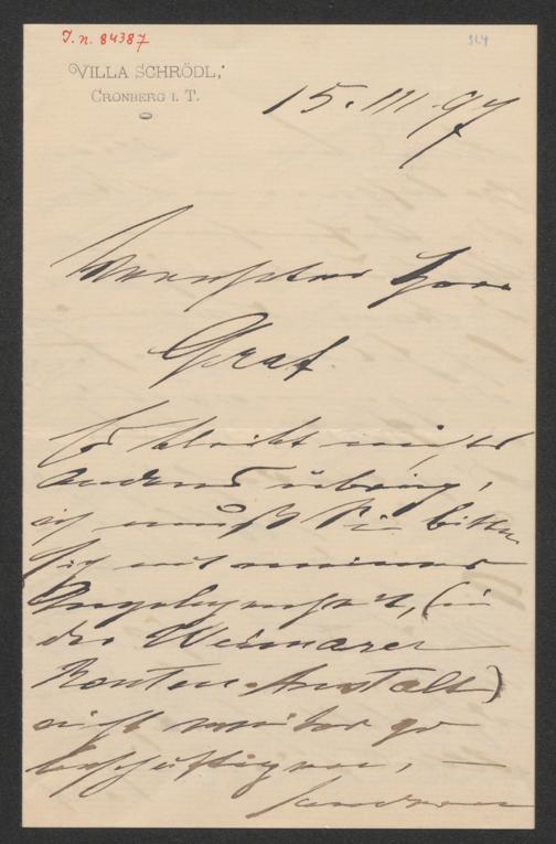 Schrödl, Norbert: Brief an Grafen. Cronberg im Taunus, 15.3.1897