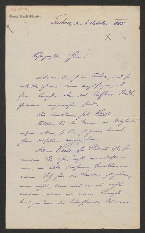 Schroeder, Eduard August: Brief an Carl Albert Sachse. Teschen, 4.10.1885