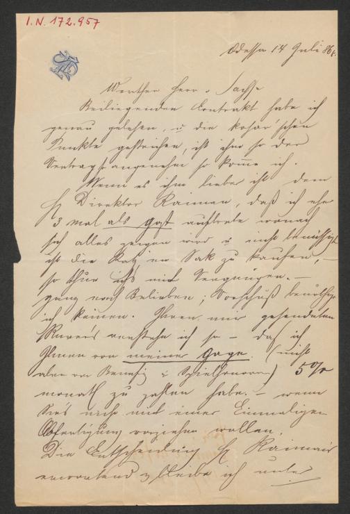 Schweighofer, Felix: Brief an Carl Albert Sachse. Odessa, 14.7.1868
