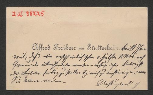 Stutterheim, Alfred von: Visitenkarte an Adalbert Franz Seligmann. o.O., o.D.