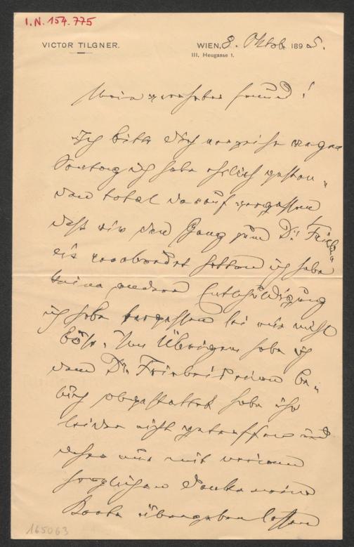 Tilgner, Viktor Oskar: Brief an Carl Moll. Wien, 8.10.1895