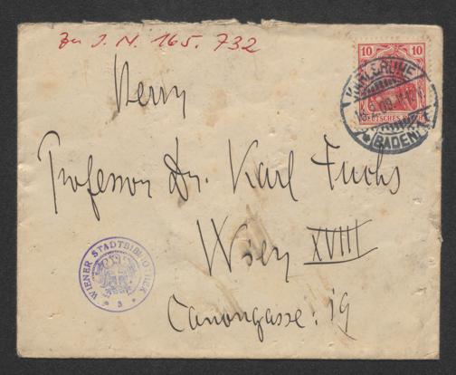 Vierordt, Heinrich: Brief an Karl Fuchs. Karlsruhe, 16.2.1909