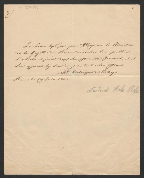 Viale Prelà, Michele: Brief an Unbekannt. Wien, 18°2.06.19