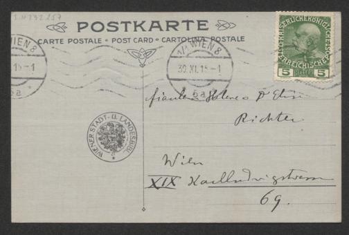 Vesque, Helene: Postkarte an Elise und Helene Richter. Wien, 30.11.1915