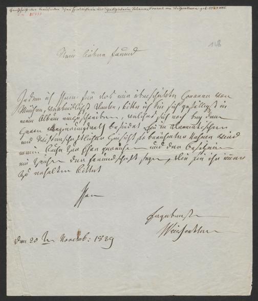 Franul von Weißenthurn, Johanna: Brief an Unbekannt. o.O., 20.11.1829