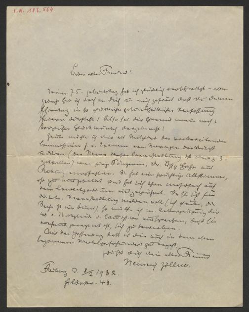 Zöllner, Heinrich: Brief an Wilhelm Kienzl. Freiburg, 8.2.1932