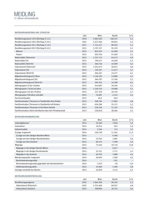 Wien - Bezirke im Fokus : Statistiken und Kennzahlen / AutorInnen der Textbeiträge: Gustav Lebhart und Ina Taxacher ; Medieninhaber und Herausgeber: Magistrat der Stadt Wien, MA 23 - Wirtschaft, Arbeit und Statistik