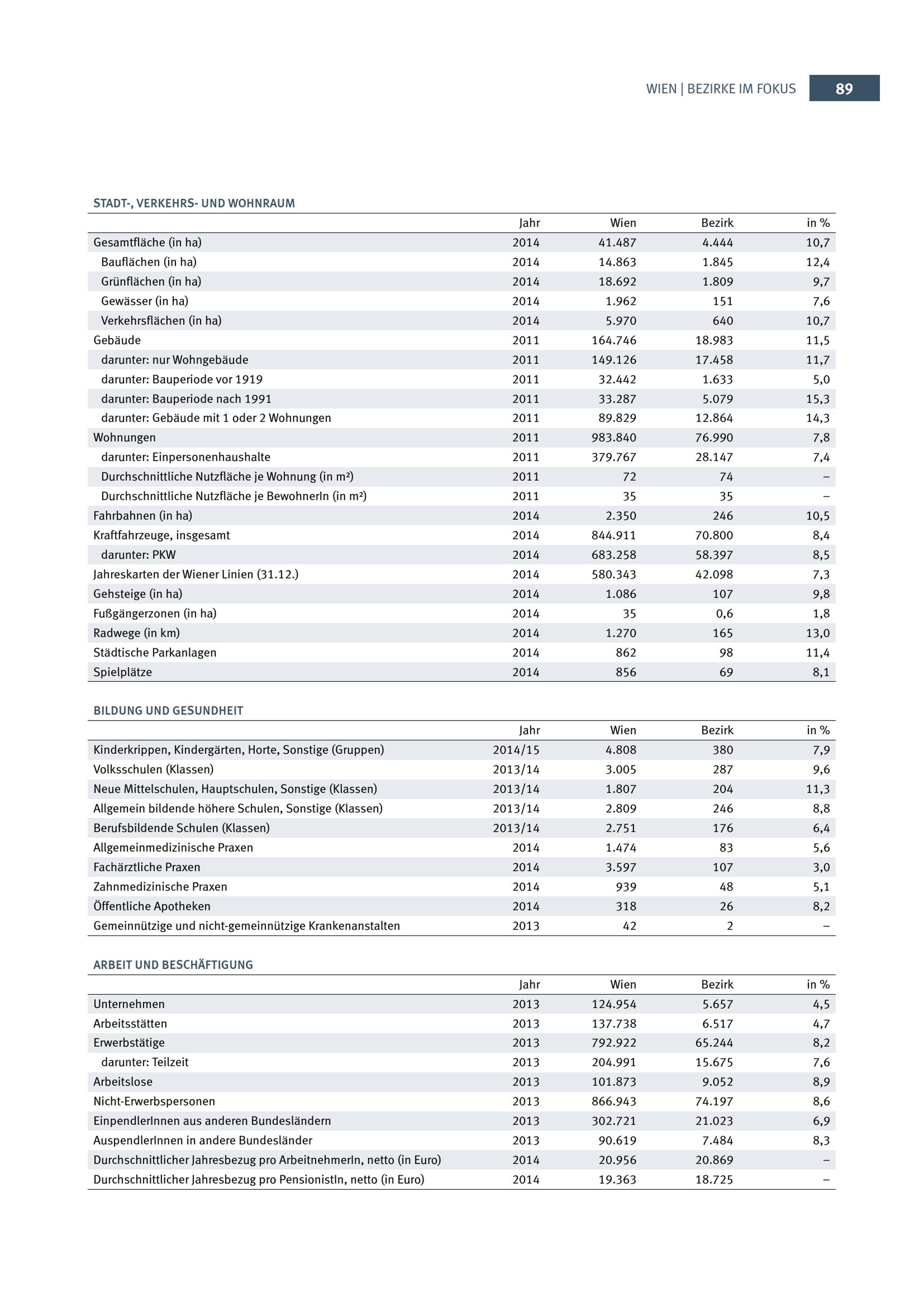Wien - Bezirke im Fokus : Statistiken und Kennzahlen / AutorInnen der Textbeiträge: Gustav Lebhart und Ina Taxacher ; Medieninhaber und Herausgeber: Magistrat der Stadt Wien, MA 23 - Wirtschaft, Arbeit und Statistik