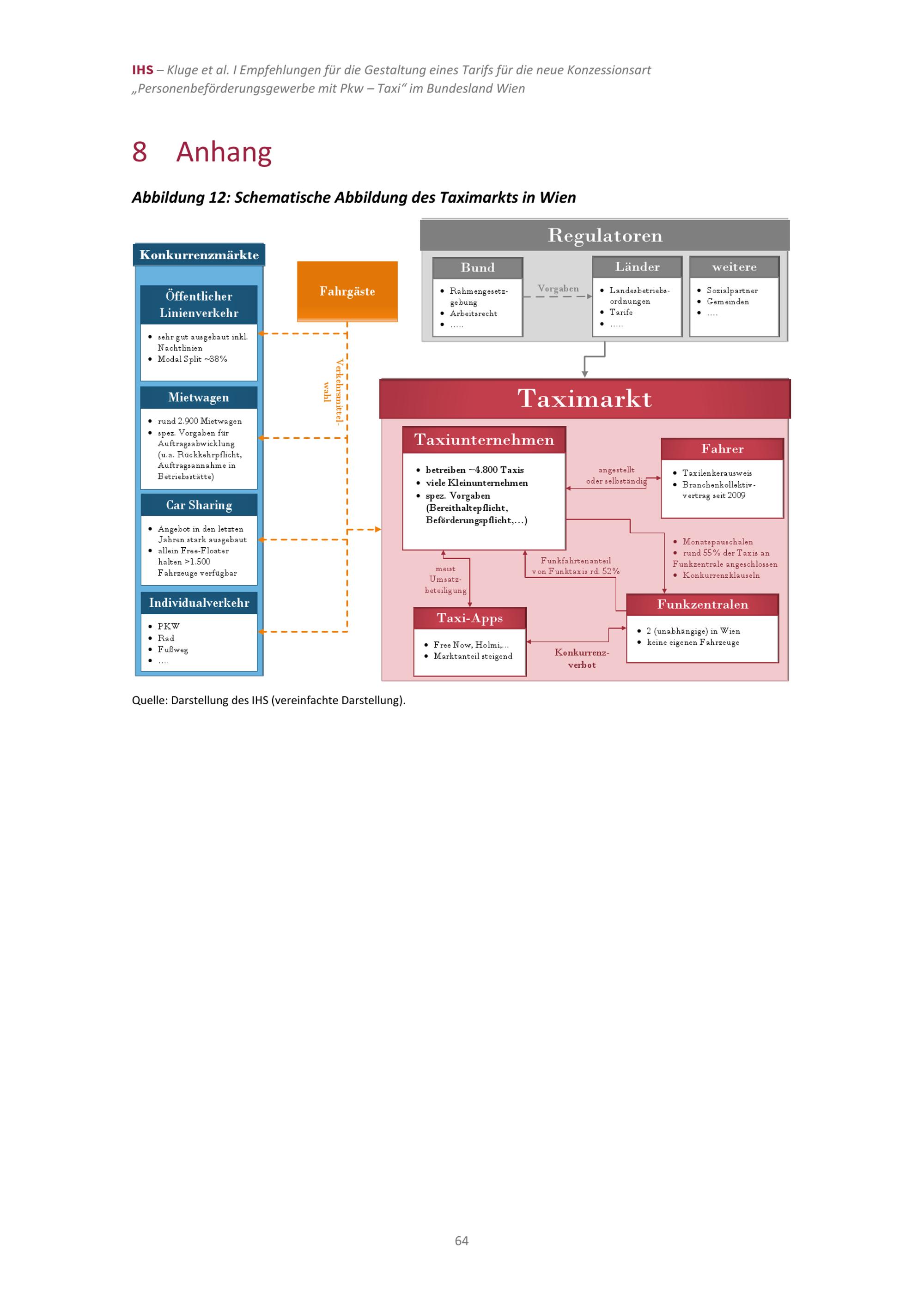Empfehlungen für die Gestaltung eines Tarifs für die neue Konzessionsart „Personenbeförderungsgewerbe mit Pkw –Taxi“ im Bundesland Wien / Jan Kluge (IHS), Martin G. Kocher (IHS, Universität Wien), Wieland Müller (Universität Wien), Hannes Zenz (IHS) ; Studie im Auftrag der Magistratsabteilung 23 der Stadt Wien ; Institut für Höhere Studien – Institute for Advanced Studies (IHS)