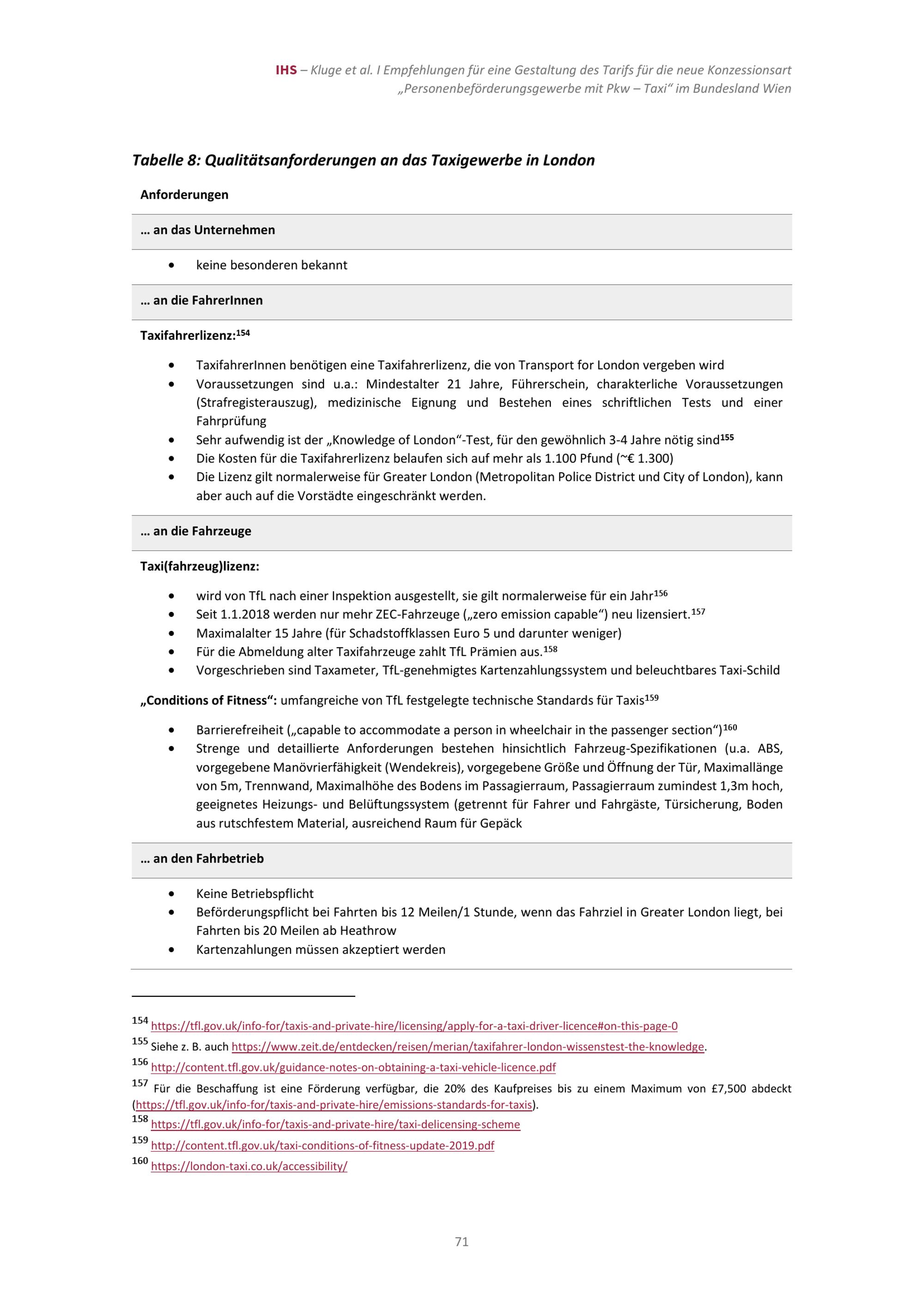 Empfehlungen für die Gestaltung eines Tarifs für die neue Konzessionsart „Personenbeförderungsgewerbe mit Pkw –Taxi“ im Bundesland Wien / Jan Kluge (IHS), Martin G. Kocher (IHS, Universität Wien), Wieland Müller (Universität Wien), Hannes Zenz (IHS) ; Studie im Auftrag der Magistratsabteilung 23 der Stadt Wien ; Institut für Höhere Studien – Institute for Advanced Studies (IHS)