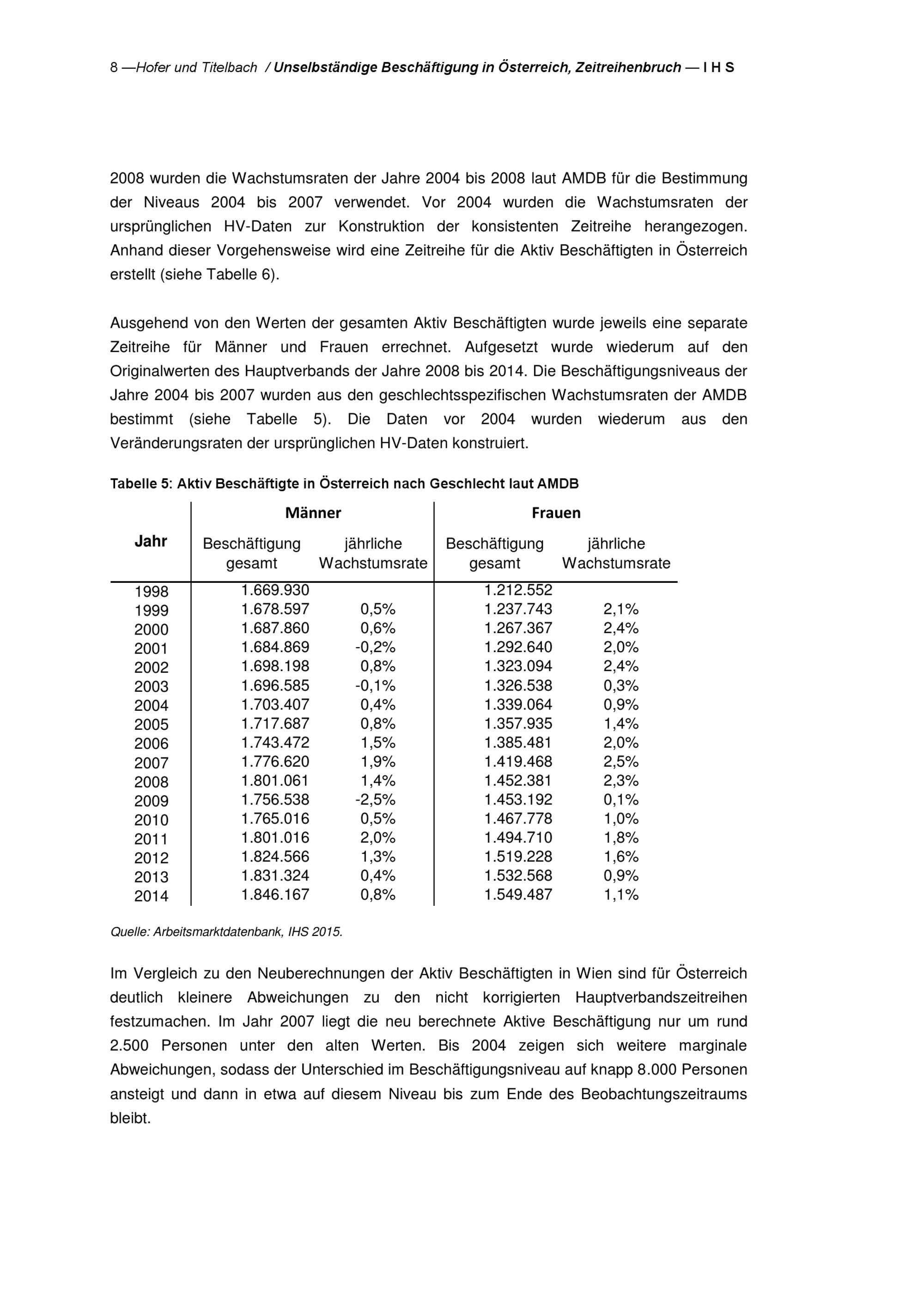 Unselbstständige Beschäftigung in Österreich - Eine konsistente Zeitreihe von 1990-2014 / Helmut Hofer, Gerlinde Titelbach ; Institut für Höhere Studien (IHS) ; im Auftrag der Magistratsabteilung 23 der Stadt Wien
