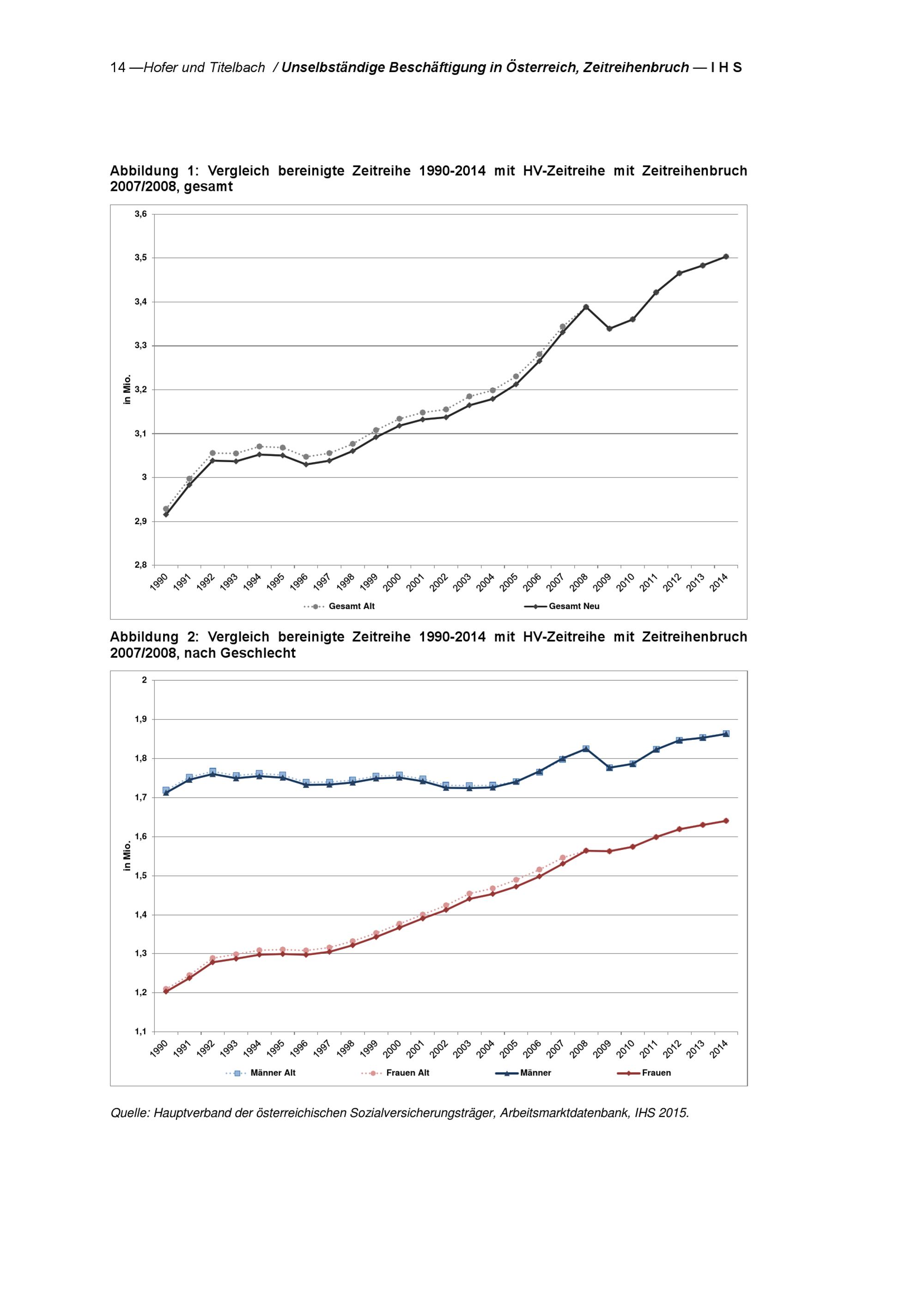 Unselbstständige Beschäftigung in Österreich - Eine konsistente Zeitreihe von 1990-2014 / Helmut Hofer, Gerlinde Titelbach ; Institut für Höhere Studien (IHS) ; im Auftrag der Magistratsabteilung 23 der Stadt Wien