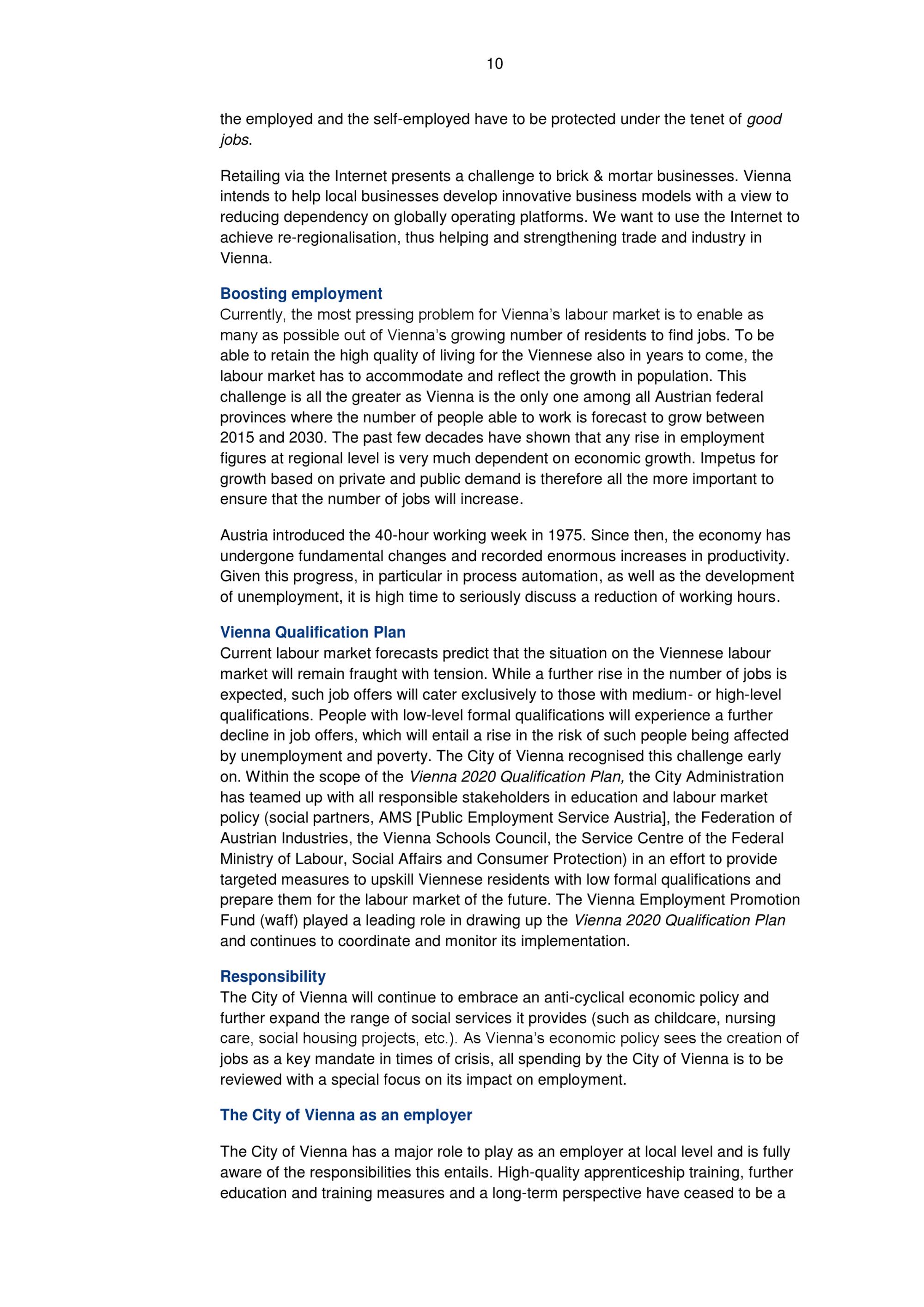 Vienna’s economic policy guidelines / commissioned by City Councillor of Finance and Economic Affairs Deputy Mayor Renate Brauner ; prepared by Municipal Department 23 –Economic Affairs, Labour and Statistics