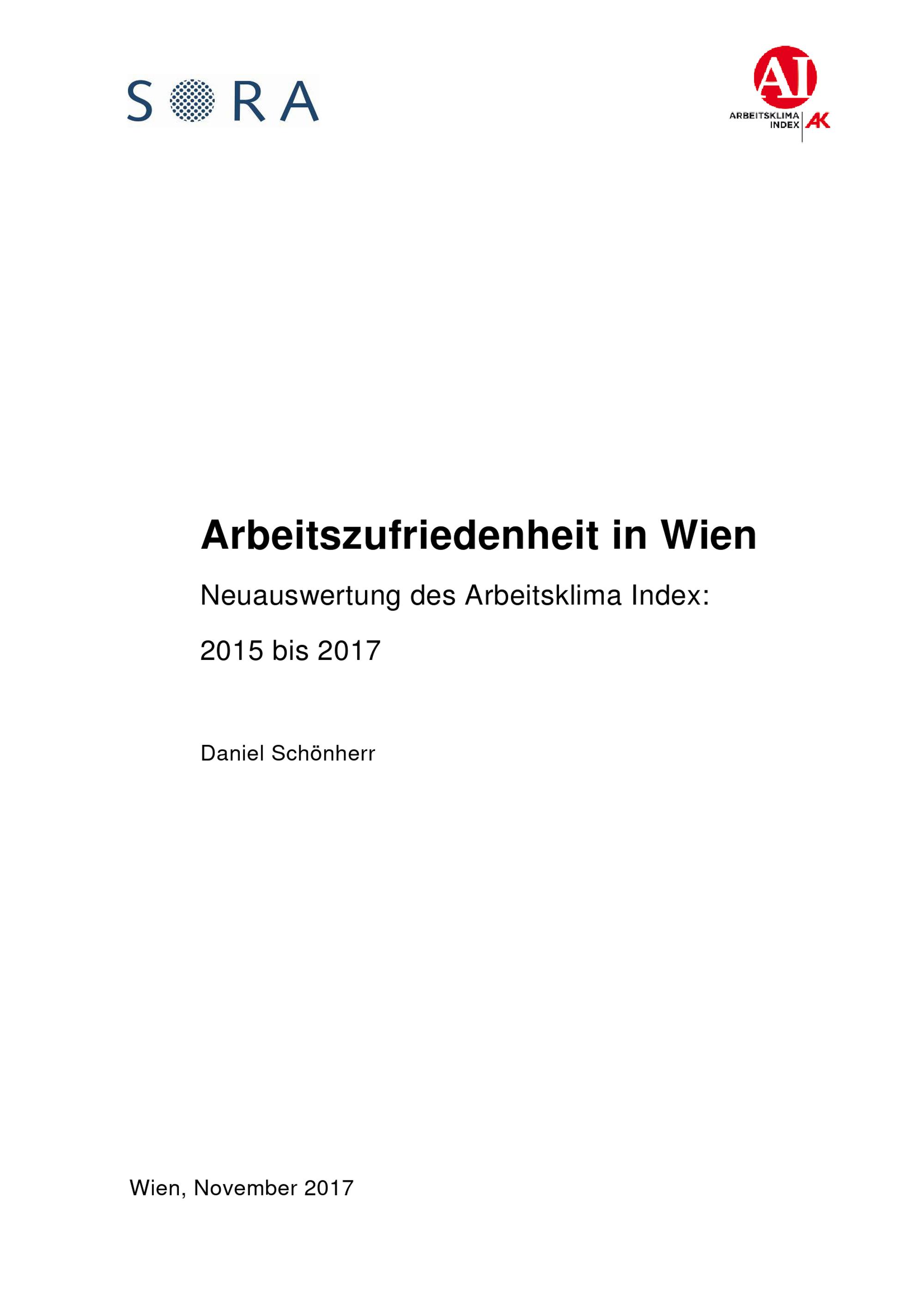Arbeitszufriedenheit in Wien : Neuauswertung des Arbeitsklima Index: 2015 bis 2017 / Daniel Schönherr ; SORA ; MA 23 - Wirtschaft, Arbeit, Statistik