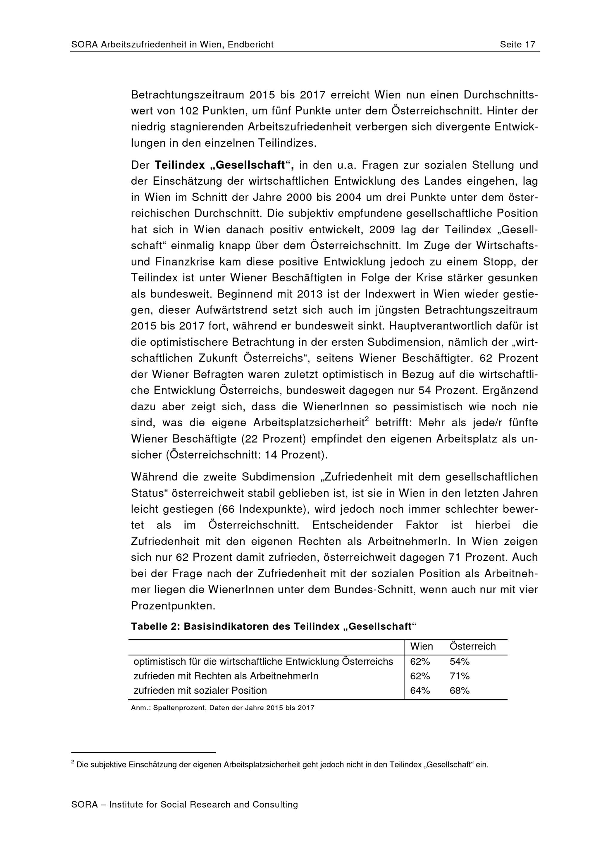 Arbeitszufriedenheit in Wien : Neuauswertung des Arbeitsklima Index: 2015 bis 2017 / Daniel Schönherr ; SORA ; MA 23 - Wirtschaft, Arbeit, Statistik