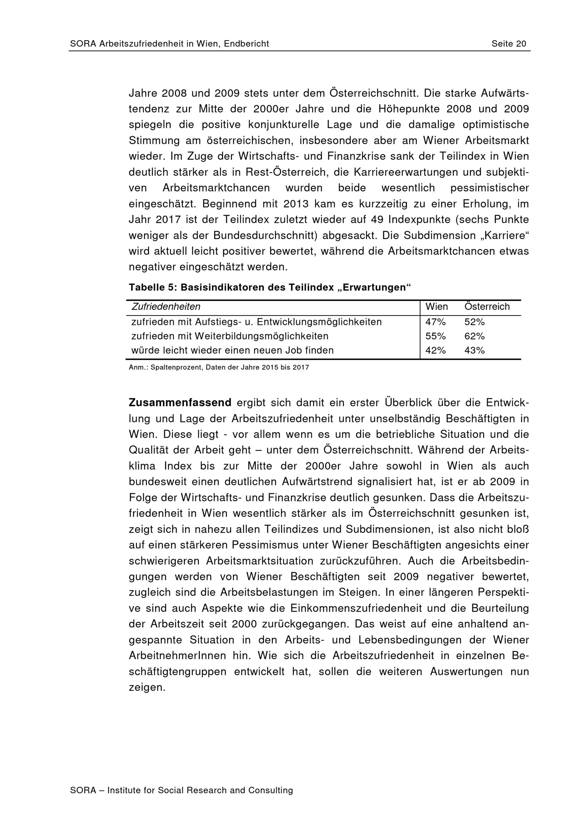 Arbeitszufriedenheit in Wien : Neuauswertung des Arbeitsklima Index: 2015 bis 2017 / Daniel Schönherr ; SORA ; MA 23 - Wirtschaft, Arbeit, Statistik