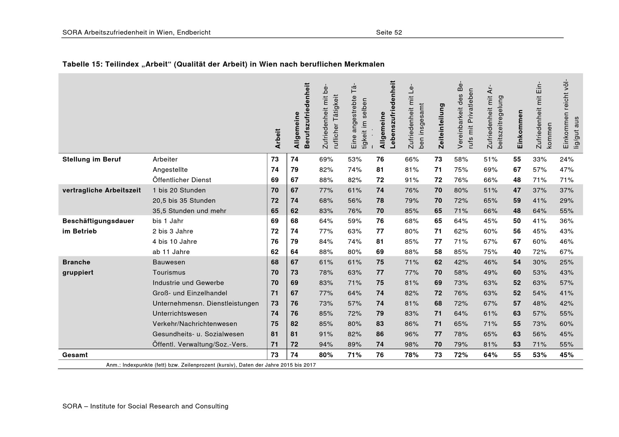 Arbeitszufriedenheit in Wien : Neuauswertung des Arbeitsklima Index: 2015 bis 2017 / Daniel Schönherr ; SORA ; MA 23 - Wirtschaft, Arbeit, Statistik