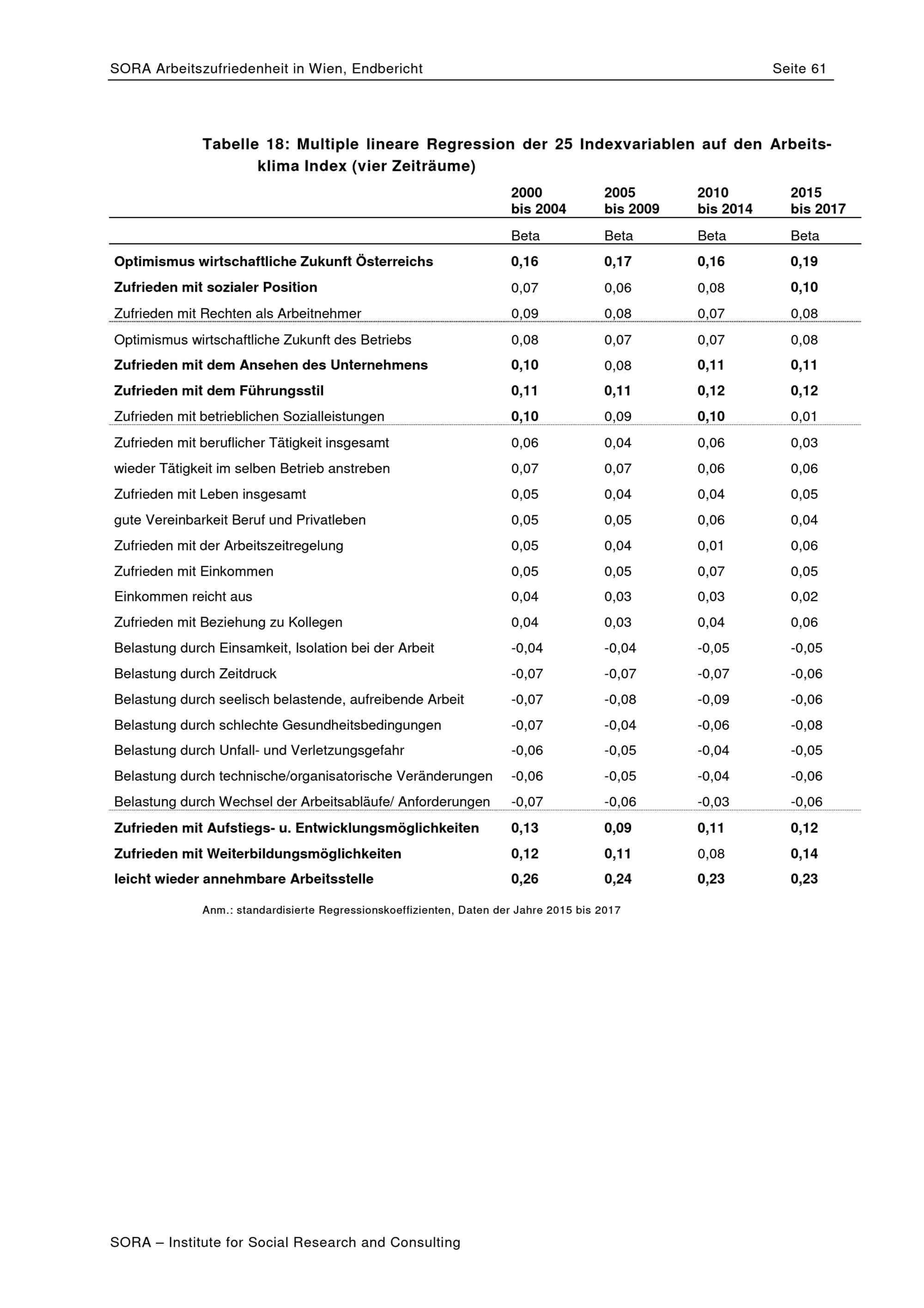 Arbeitszufriedenheit in Wien : Neuauswertung des Arbeitsklima Index: 2015 bis 2017 / Daniel Schönherr ; SORA ; MA 23 - Wirtschaft, Arbeit, Statistik