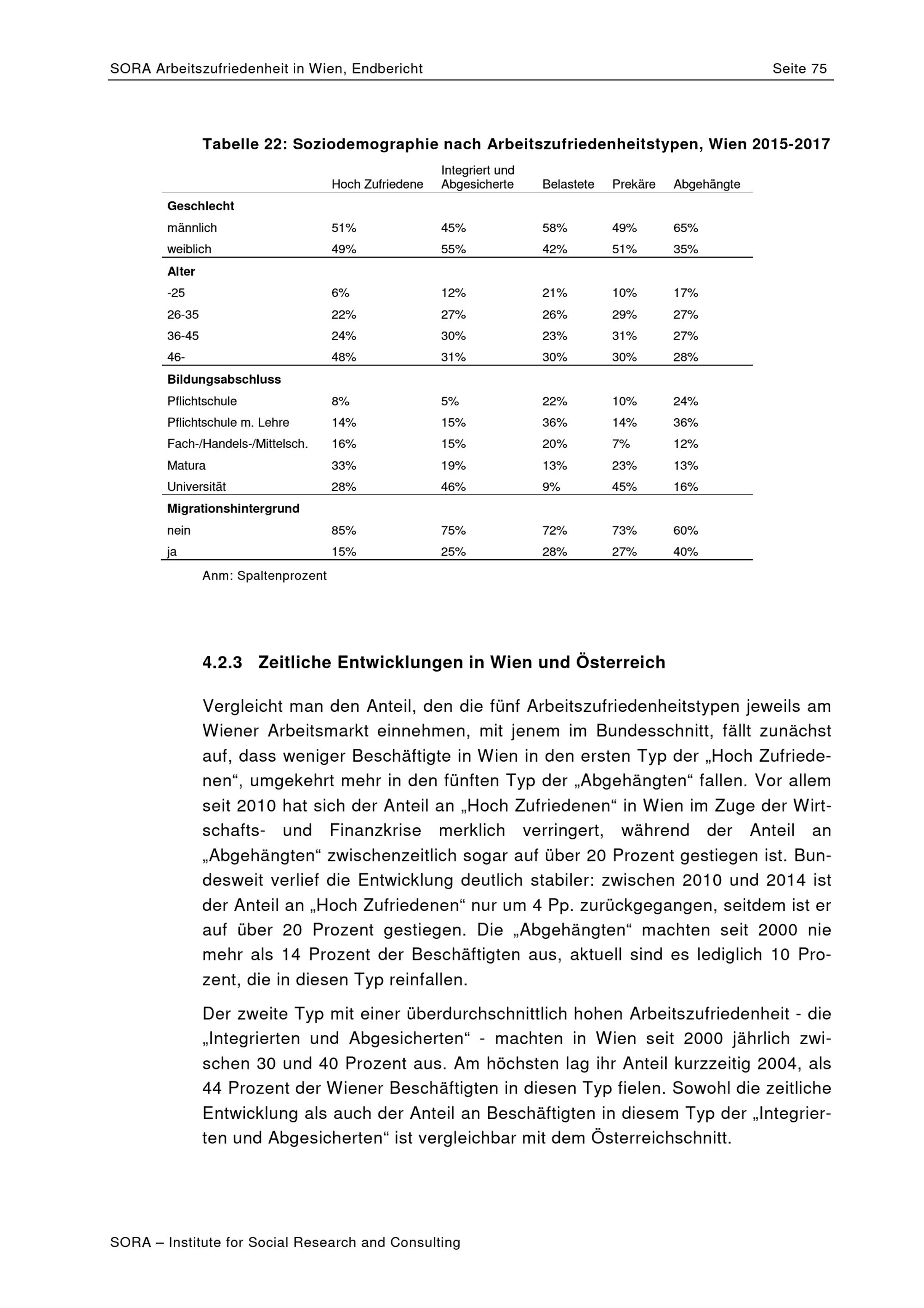 Arbeitszufriedenheit in Wien : Neuauswertung des Arbeitsklima Index: 2015 bis 2017 / Daniel Schönherr ; SORA ; MA 23 - Wirtschaft, Arbeit, Statistik