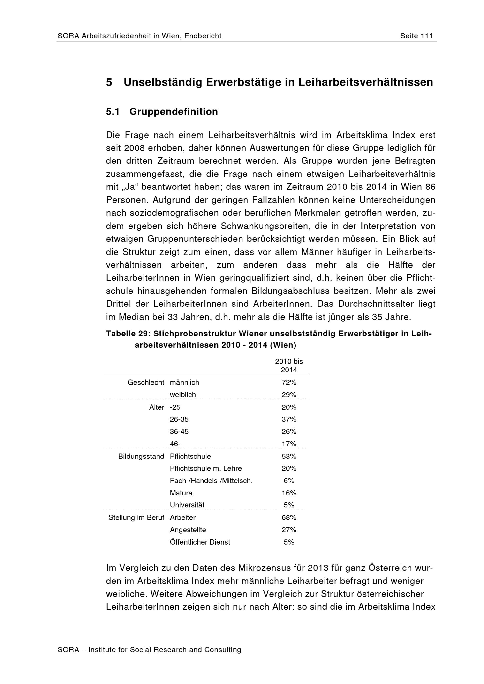 Arbeitszufriedenheit in Wien : Sonderauswertung des Arbeitsklima Index / Daniel Schönherr, Corinna Mayerl ; SORA ; MA 23 - Wirtschaft, Arbeit, Statistik