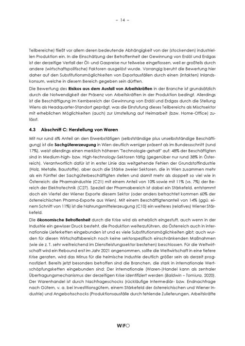 Kurzanalyse zur relativen Betroffenheit der Wiener Wirtschaft von der aktuellen COVID-19-Krise / Julia Bachtrögler, Matthias Firgo, Oliver Fritz, Michael Klien, Peter Mayerhofer, Philipp Piribauer, Gerhard Streicher ; wissenschaftliche Assistenz: Fabian Gabelberger, Andrea Grabmayer, Andrea Hartmann, Birgit Schuster ; Herausgeber: Österreichisches Institut für Wirtschaftsforschung