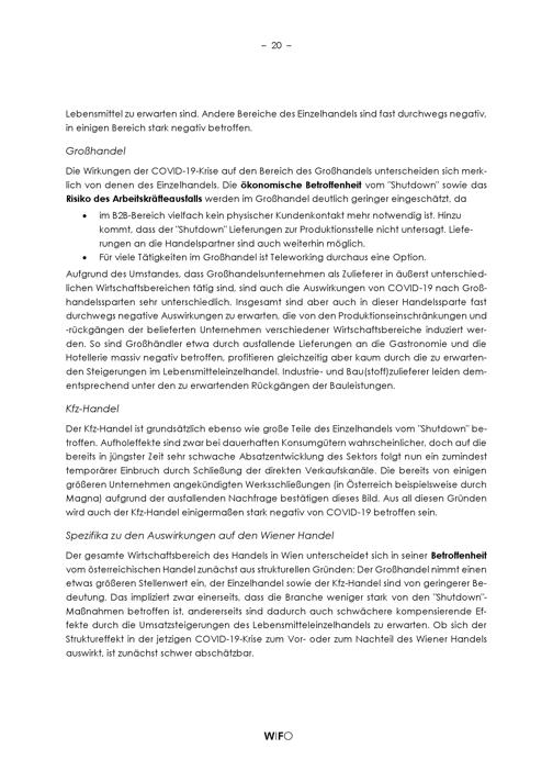 Kurzanalyse zur relativen Betroffenheit der Wiener Wirtschaft von der aktuellen COVID-19-Krise / Julia Bachtrögler, Matthias Firgo, Oliver Fritz, Michael Klien, Peter Mayerhofer, Philipp Piribauer, Gerhard Streicher ; wissenschaftliche Assistenz: Fabian Gabelberger, Andrea Grabmayer, Andrea Hartmann, Birgit Schuster ; Herausgeber: Österreichisches Institut für Wirtschaftsforschung
