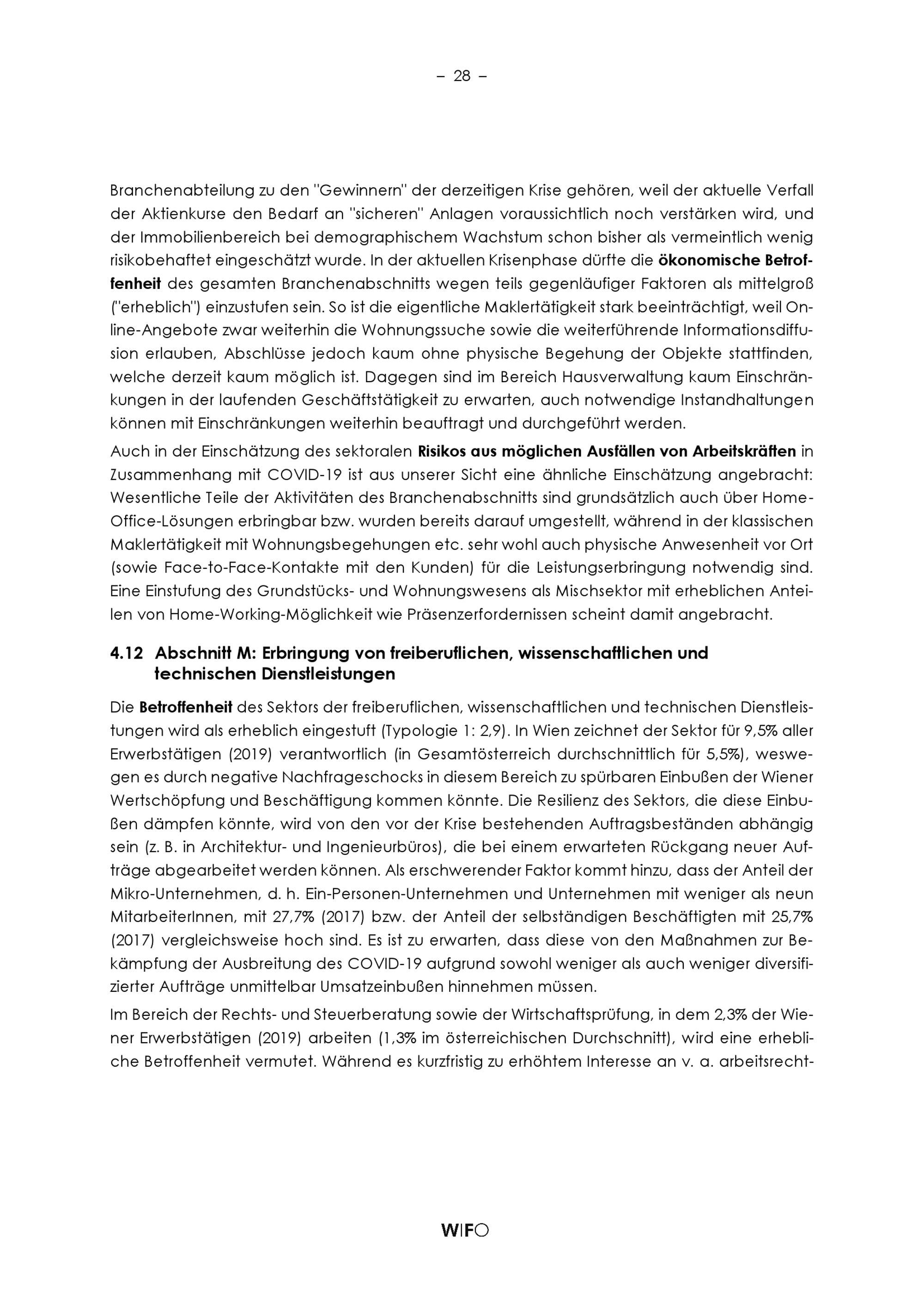 Kurzanalyse zur relativen Betroffenheit der Wiener Wirtschaft von der aktuellen COVID-19-Krise / Julia Bachtrögler, Matthias Firgo, Oliver Fritz, Michael Klien, Peter Mayerhofer, Philipp Piribauer, Gerhard Streicher ; wissenschaftliche Assistenz: Fabian Gabelberger, Andrea Grabmayer, Andrea Hartmann, Birgit Schuster ; Herausgeber: Österreichisches Institut für Wirtschaftsforschung