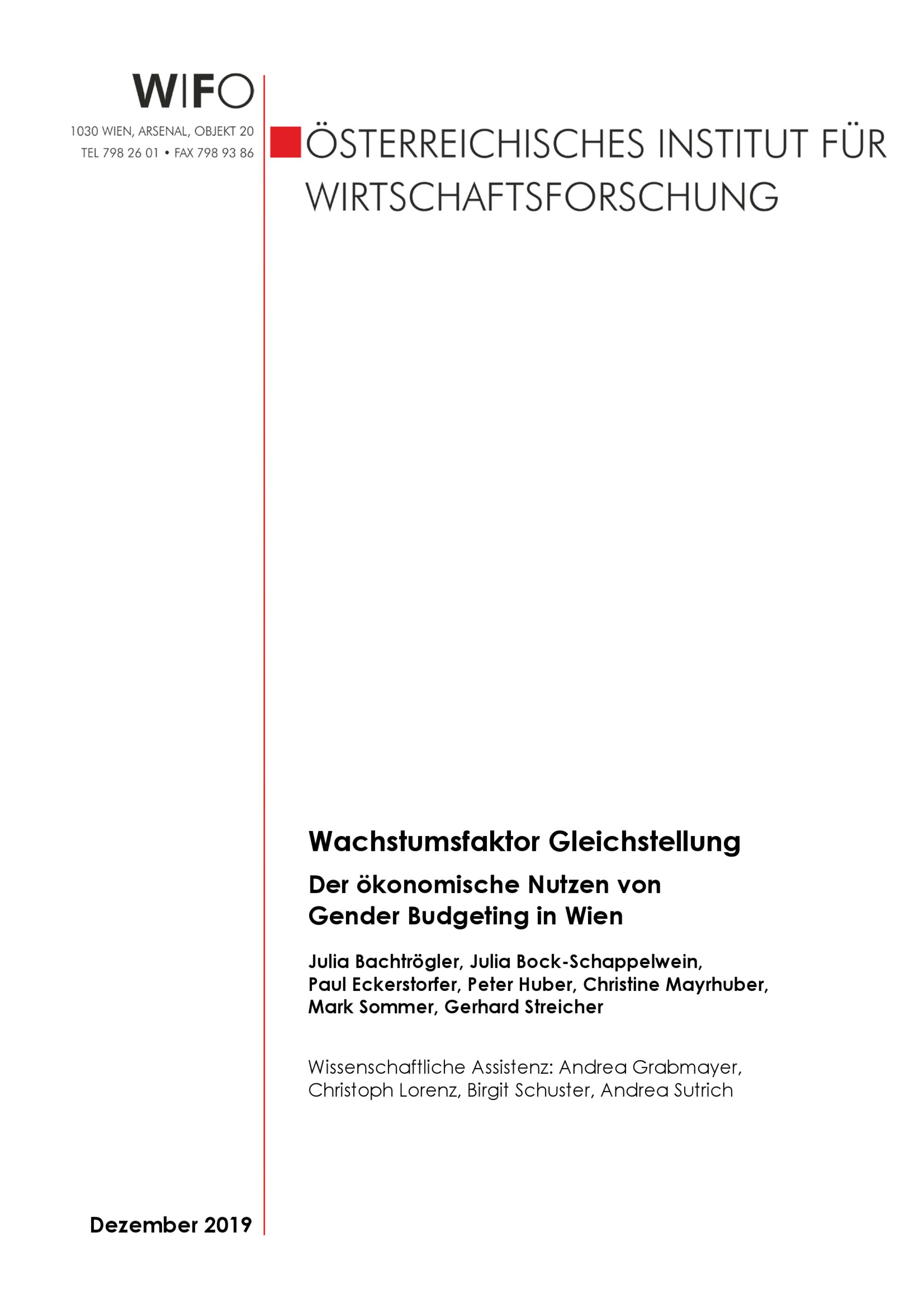 Wachstumsfaktor Gleichstellung : der ökonomische Nutzen von Gender Budgeting in Wien / Julia Bachtrögler, Julia Bock-Schappelwein, Paul Eckerstorfer, Peter Huber, Christine Mayrhuber, Mark Sommer, Gerhard Streicher