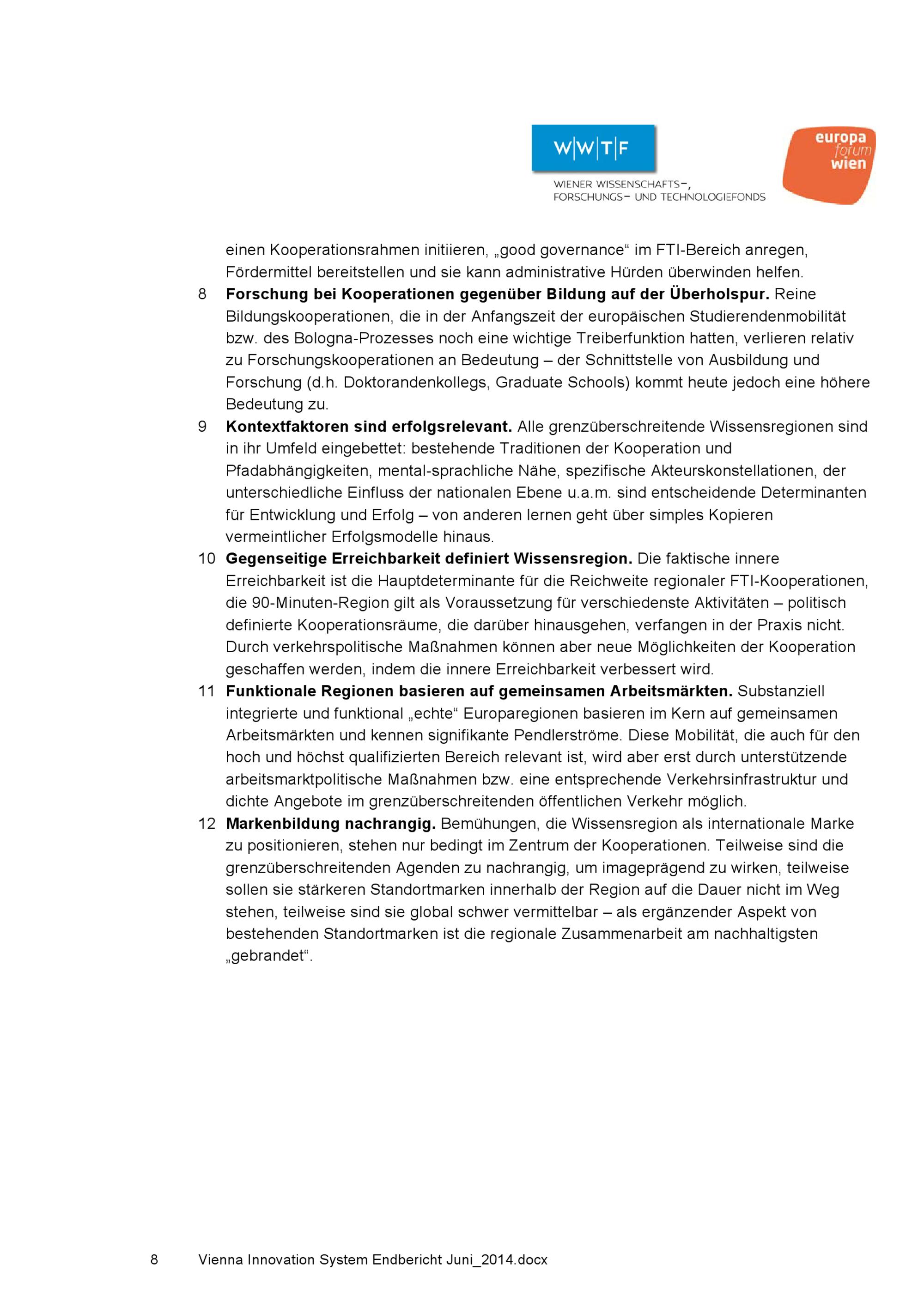 Innovationssystem in centrope : regionale Perspektiven für den FTI-Standort Wien / Studie des europaforum wien und des Wiener Wissenschafts-, Forschungs- und Technologiefonds WWTF im Auftrag der Stadt Wien MA 23 Wirtschaft, Arbeit und Statistik ; AutorInnen: Barbora Chen [und 5 weitere]