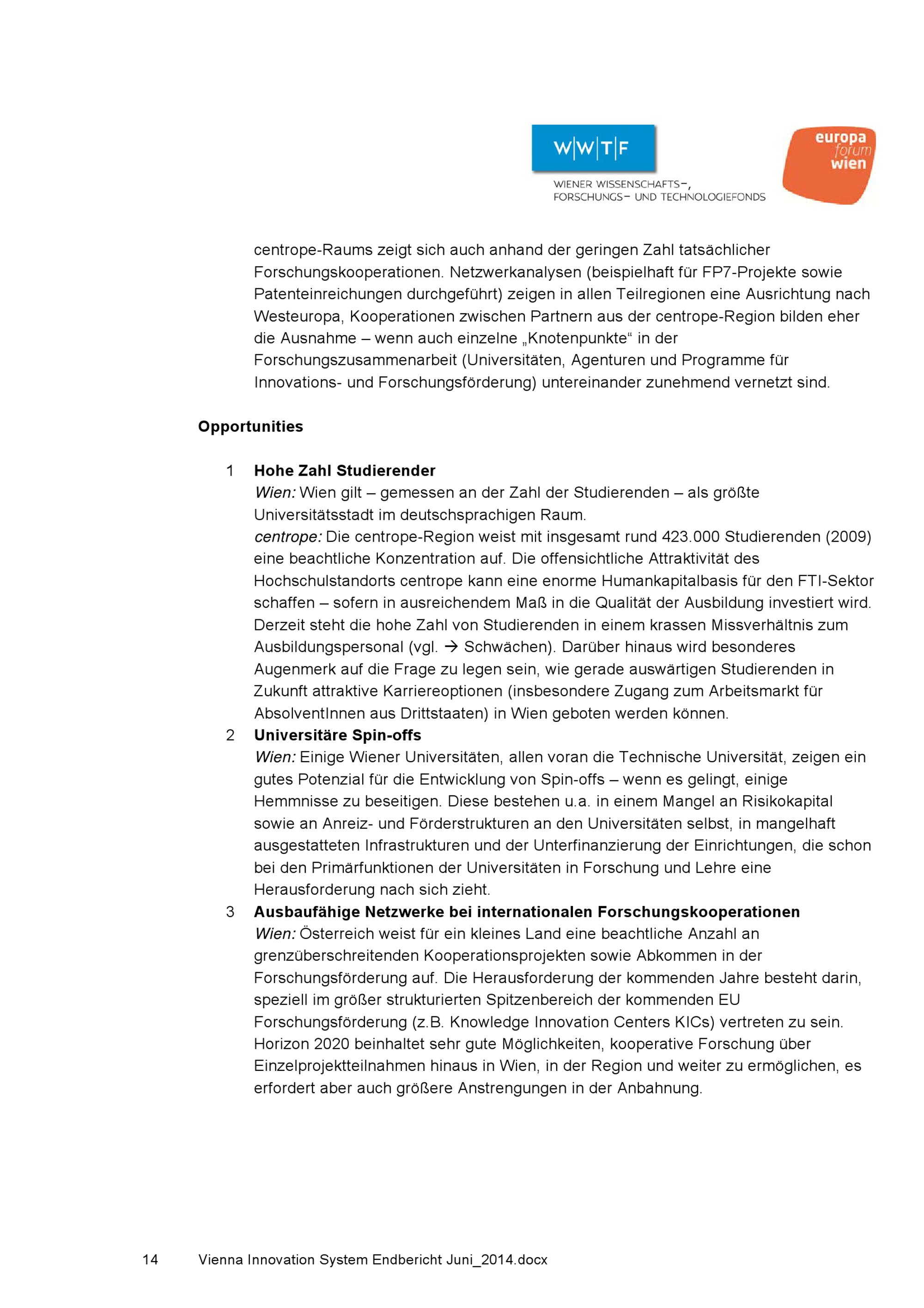 Innovationssystem in centrope : regionale Perspektiven für den FTI-Standort Wien / Studie des europaforum wien und des Wiener Wissenschafts-, Forschungs- und Technologiefonds WWTF im Auftrag der Stadt Wien MA 23 Wirtschaft, Arbeit und Statistik ; AutorInnen: Barbora Chen [und 5 weitere]