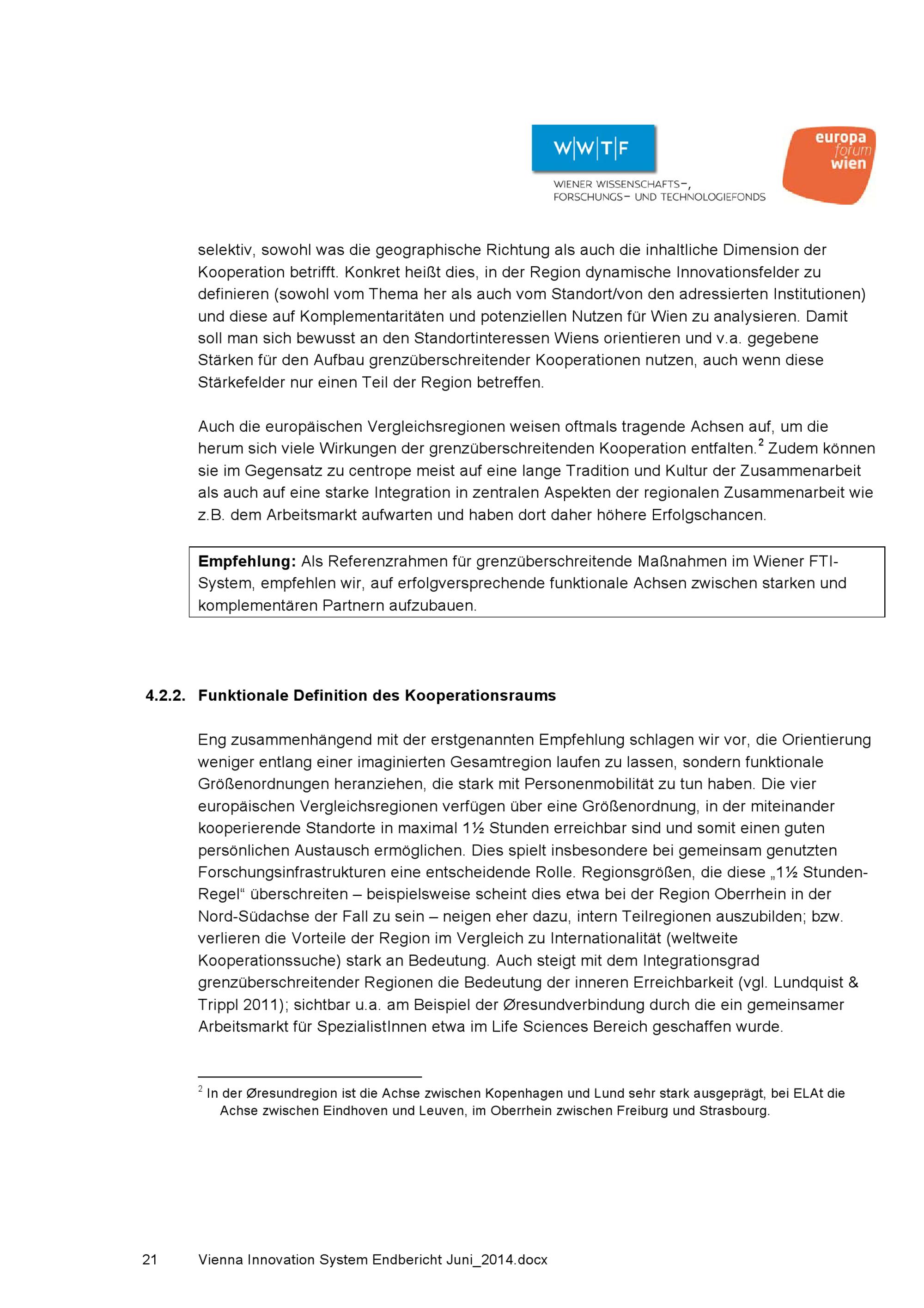 Innovationssystem in centrope : regionale Perspektiven für den FTI-Standort Wien / Studie des europaforum wien und des Wiener Wissenschafts-, Forschungs- und Technologiefonds WWTF im Auftrag der Stadt Wien MA 23 Wirtschaft, Arbeit und Statistik ; AutorInnen: Barbora Chen [und 5 weitere]