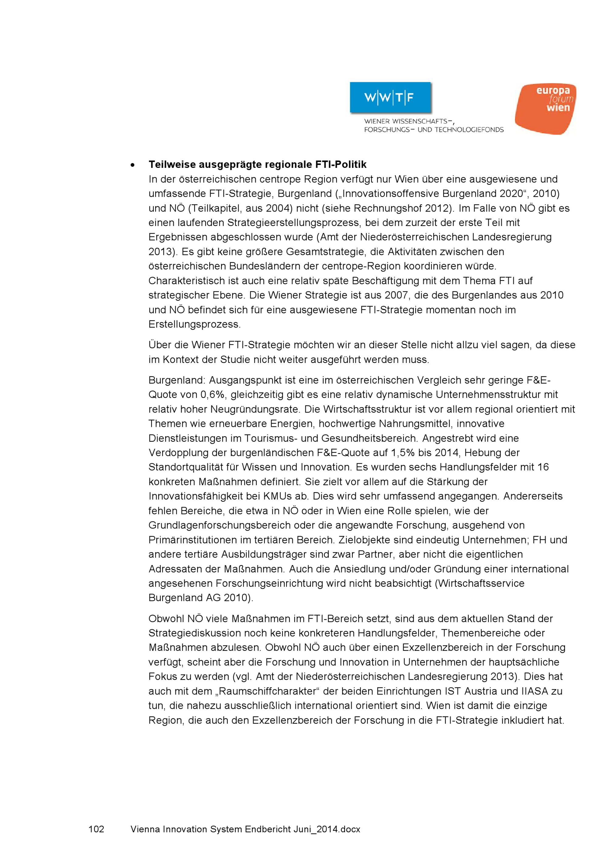 Innovationssystem in centrope : regionale Perspektiven für den FTI-Standort Wien / Studie des europaforum wien und des Wiener Wissenschafts-, Forschungs- und Technologiefonds WWTF im Auftrag der Stadt Wien MA 23 Wirtschaft, Arbeit und Statistik ; AutorInnen: Barbora Chen [und 5 weitere]