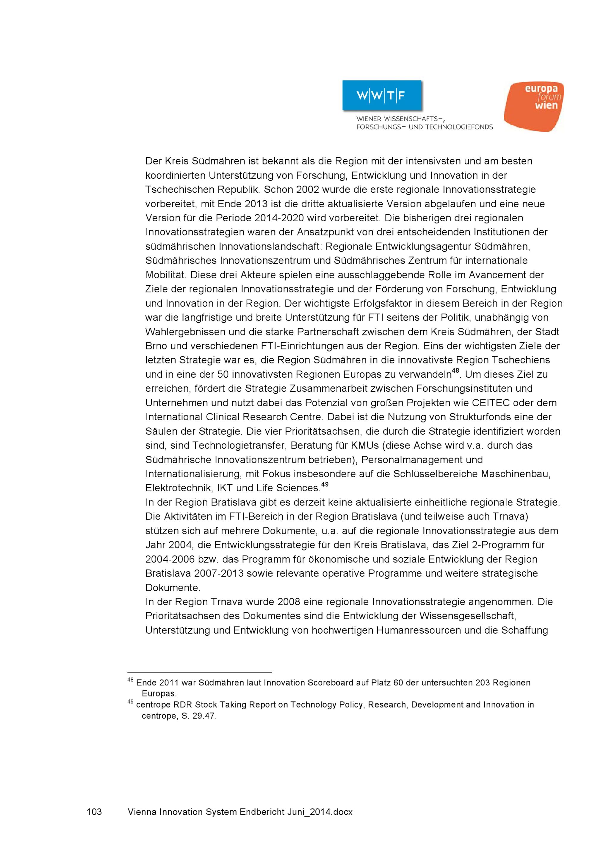 Innovationssystem in centrope : regionale Perspektiven für den FTI-Standort Wien / Studie des europaforum wien und des Wiener Wissenschafts-, Forschungs- und Technologiefonds WWTF im Auftrag der Stadt Wien MA 23 Wirtschaft, Arbeit und Statistik ; AutorInnen: Barbora Chen [und 5 weitere]