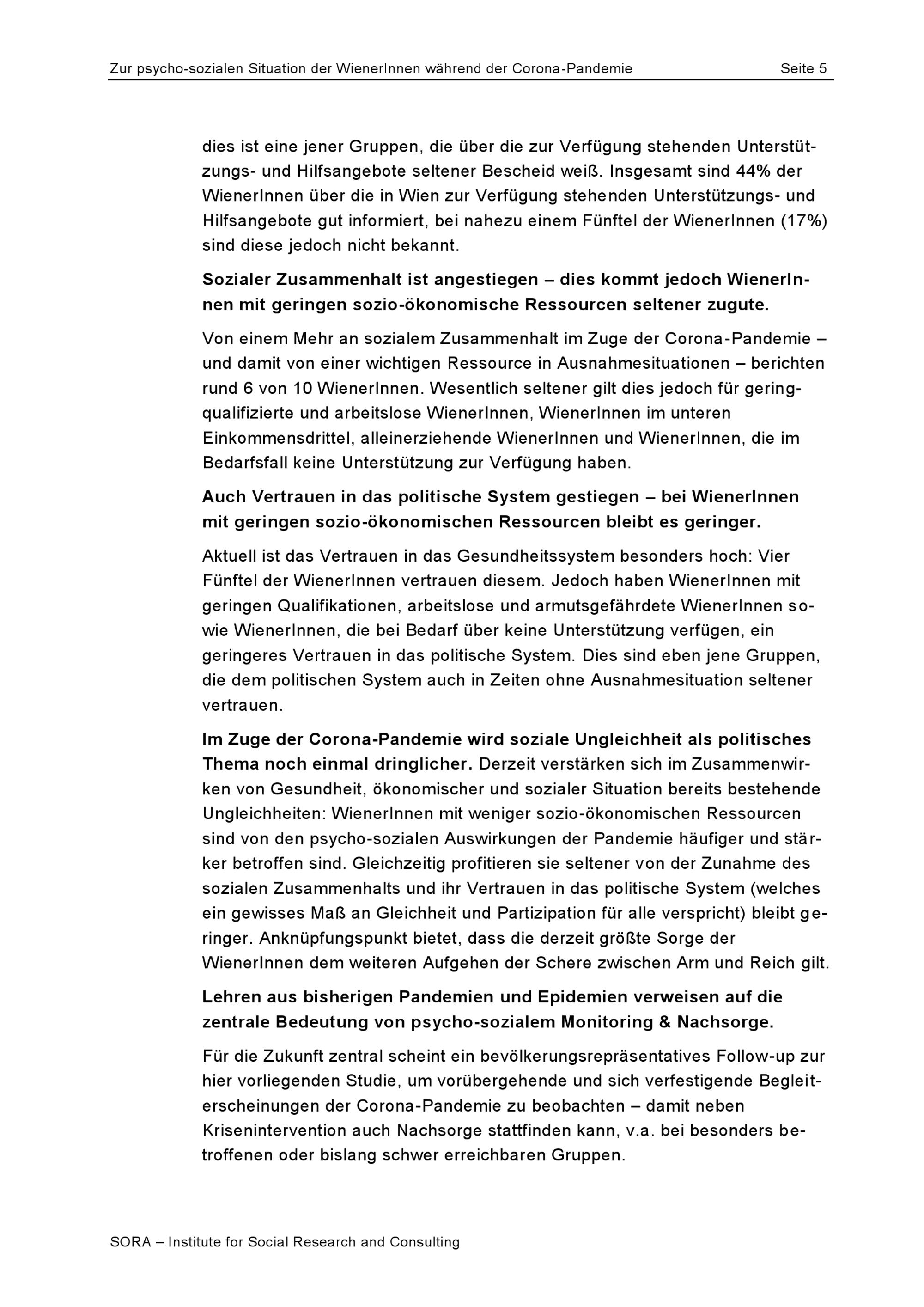 Zur psycho-sozialen Situation der WienerInnen während der Corona-Pandemie / Martina Zandonella, David Baumegger, Werner Sturmberger