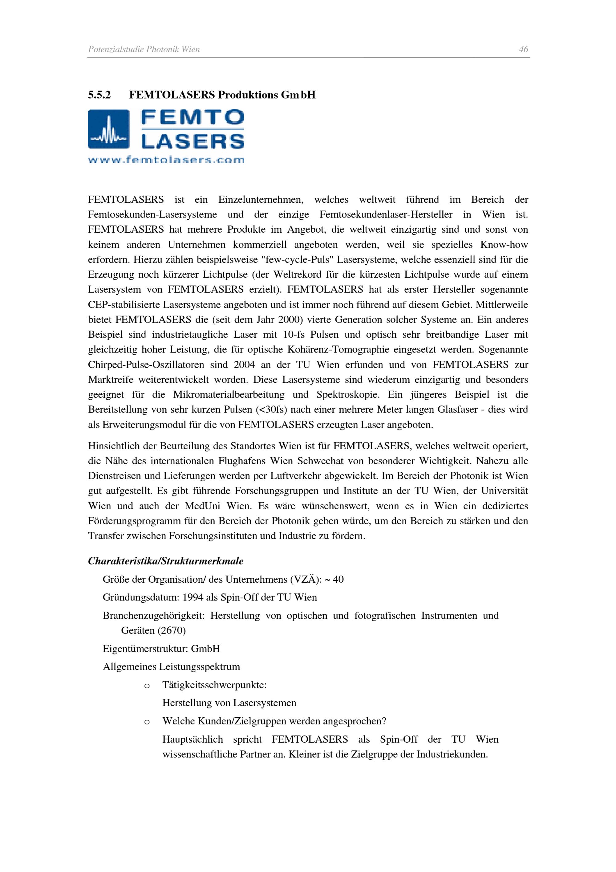 Potenzialstudie - Photonik/Optische Technologien am Wirtschaftsstandort Wien / Christian Hartmann, Cornelia Sterner, Georg Jakopic ; im Auftrag von: Magistratsabteilung 23 - Wirtschaft, Arbeit und Statistik