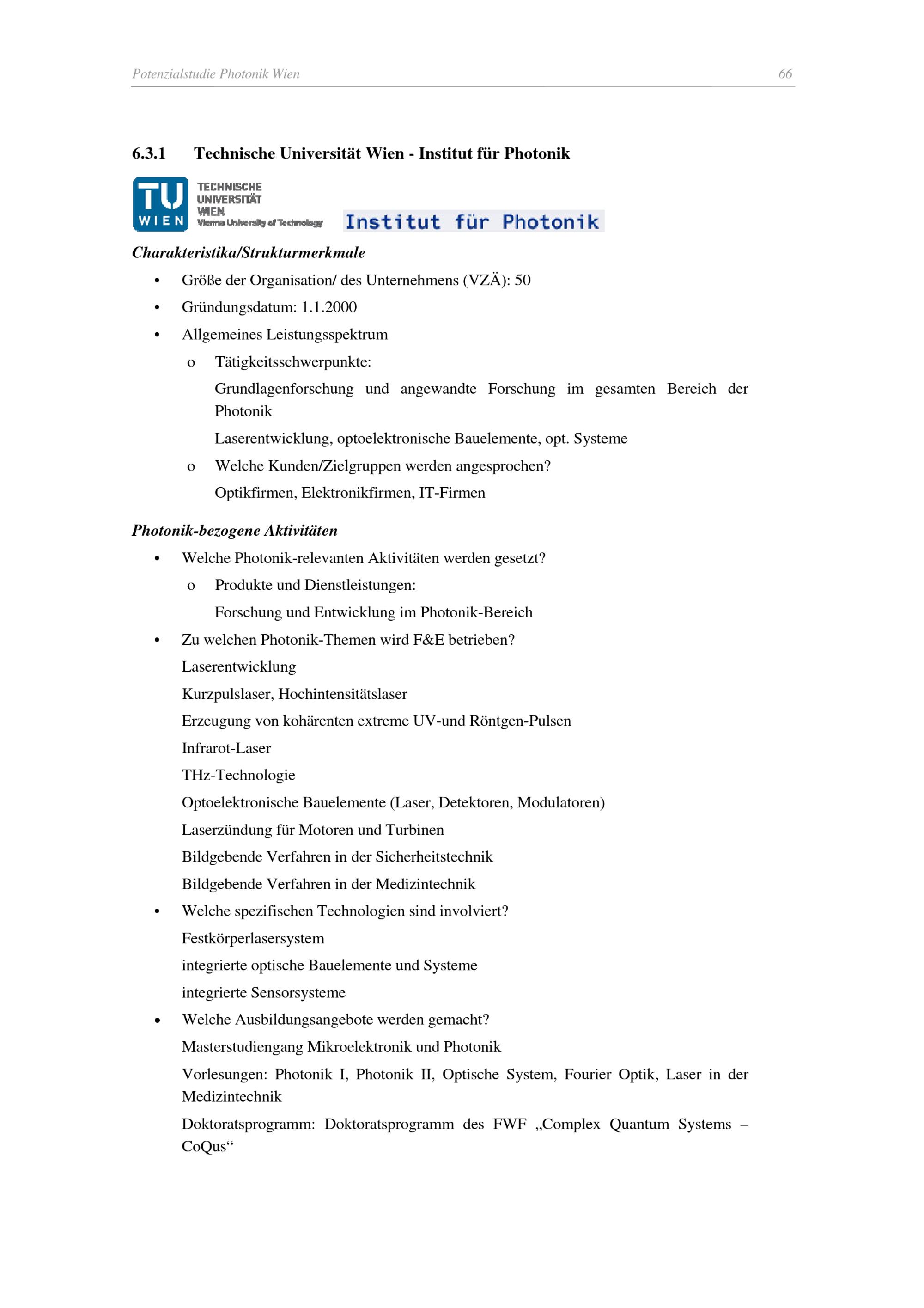 Potenzialstudie - Photonik/Optische Technologien am Wirtschaftsstandort Wien / Christian Hartmann, Cornelia Sterner, Georg Jakopic ; im Auftrag von: Magistratsabteilung 23 - Wirtschaft, Arbeit und Statistik