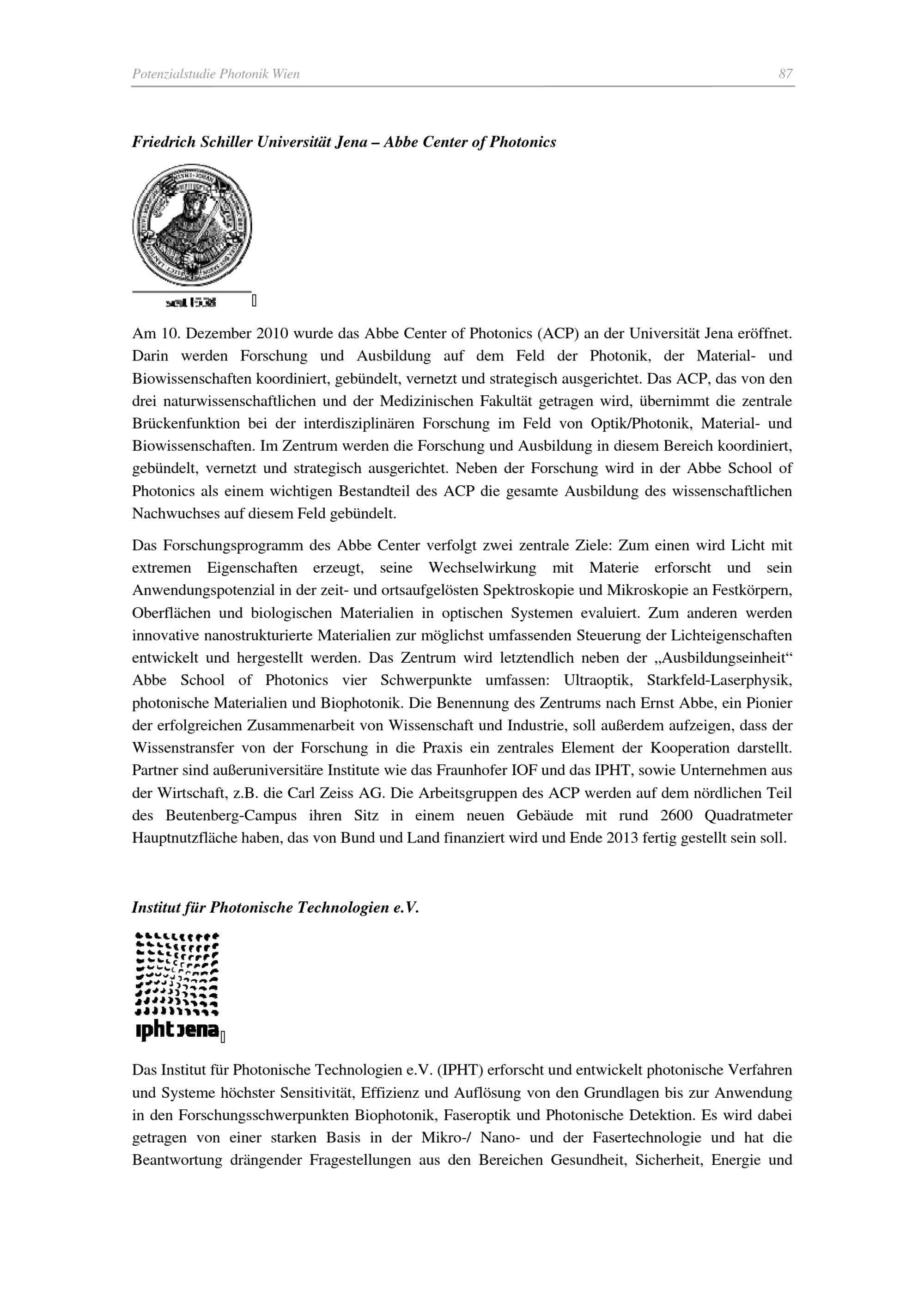 Potenzialstudie - Photonik/Optische Technologien am Wirtschaftsstandort Wien / Christian Hartmann, Cornelia Sterner, Georg Jakopic ; im Auftrag von: Magistratsabteilung 23 - Wirtschaft, Arbeit und Statistik